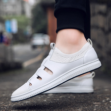 2017新款白色镂空休闲鞋男夏季透气洞洞凉皮鞋英伦一脚蹬懒人男鞋
