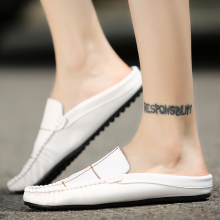 夏季男士白色皮拖鞋包头半拖鞋男豆豆鞋驾车休闲鞋英伦懒人百搭