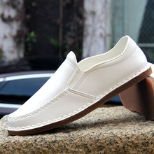 2017新款夏季男士懒人鞋男一脚蹬圆头软底白色皮鞋男日常休闲百搭