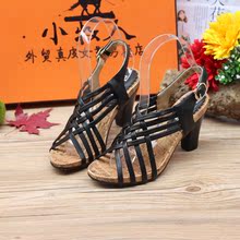 包邮新品外贸尾单鞋时尚编织粗跟高跟鞋女鞋凉鞋子特价