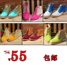 糖果色女鞋单鞋子圆头低跟粗跟系带短靴子女靴高帮鞋学生拼色包邮