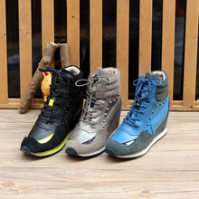 新品时尚高帮鞋女鞋子内增高铆钉系带坡跟短靴子潮鞋学生特价包邮