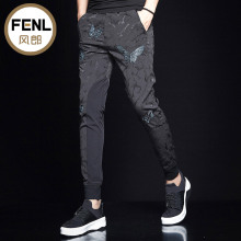 夏季男长裤薄款青年运动休闲裤修身潮牌迷彩裤子刺绣收口束脚卫裤