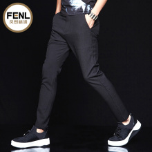 休闲裤男修身小脚长裤黑色直筒裤子青年男士西裤韩版百搭格子裤潮