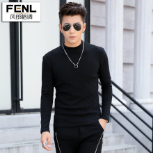 FENL2017秋季新款男士服装立领POLO衫纯色简约长袖t恤修身长袖男