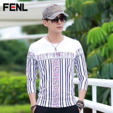 FENL秋季条纹t恤男长袖修身圆领条子衫 秋冬装新款打底衫上衣服装