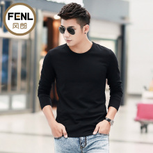 FENL男长袖t恤圆领修身棉春秋装衣服 潮流服装纯色体恤男装打底衣