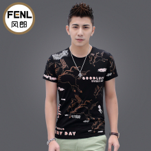 FENL2017新款短袖t恤男圆领韩版修身装精神青年夏季装半袖男印花