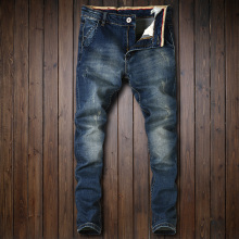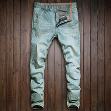 新品浅蓝色做旧抓痕水洗潮流男士韩版修身小直筒牛仔裤牛仔长裤子