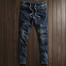 逸客秋冬款新品日系复古潮流男士牛仔裤哈伦裤抽绳低裆跨裤长裤子