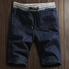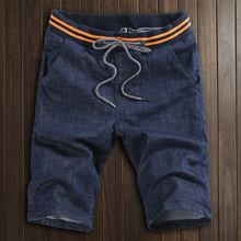 逸客夏季新款潮男时尚韩版抽绳松紧腰薄款原色牛仔短裤中裤五分裤