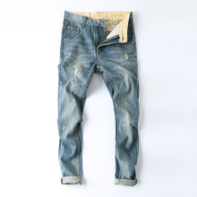 逸客秋装新品四季款做旧浅蓝色五袋款小直筒修身男士牛仔裤长裤子