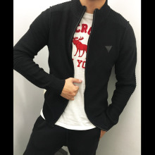 GUESS 男士爆帅款拉链开衫毛衣 LOGO拼皮质感美国专柜正品代购