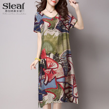 棉麻连衣裙女夏2017新款女装气质印花休闲大码碎花裙子中长a字裙