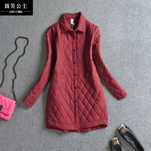 欧洲站16冬新款女韩版宽松西装领过膝中长款羽绒棉衣加厚外套棉袄