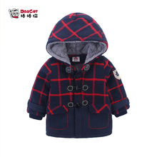 男童格子加绒大衣冬季男婴儿童装中长款女童宝宝加厚冬装棉衣外套