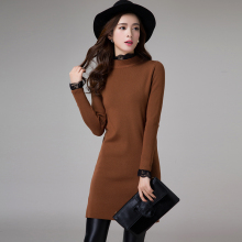2016秋冬新款大码女装韩版圆领提花中长款打底衫毛衣针织连衣裙厚