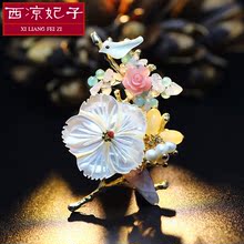 EVA颐娲首饰 简约新款胸针复古花朵母贝珍珠胸花配饰 时尚气质 女