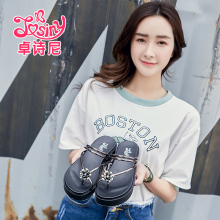 卓诗尼2017夏季天新款夹趾花瓣松糕厚底时尚百搭韩版女士凉拖鞋子