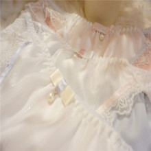 包邮蝴蝶结甜美睡衣复古蕾丝宫廷公主高腰长裙睡裙睡衣女家居服白