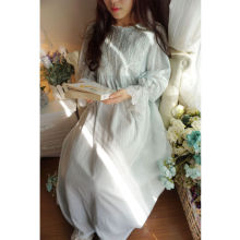 书时 韩版长袖睡衣家居服 宫廷棉质复古睡裙 公主睡衣 拖地长裙