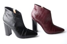 时尚尖头牛皮女鞋 纯色粗跟鞋 6413505003