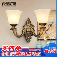 添景灯饰纯铜壁灯双头镜前灯创意仿云石两头客厅灯具复古床头灯饰