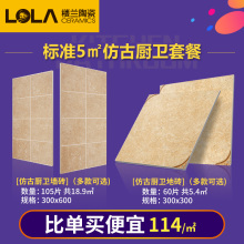 楼兰瓷砖 厨房卫生间瓷砖5平方标准厨卫套餐 墙砖105片 地砖60片