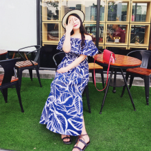 罗拉迪莎大码女装 马尔代夫度假去 吊带一字肩旅游度假风胖mm长裙