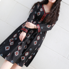 罗拉迪莎大码女装2017春新日式风波西米亚几何花纹大摆长裙胖mm