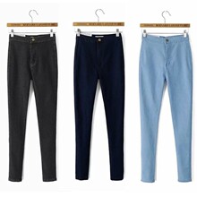 欧美复古风紧身显瘦高腰铅笔女长裤弹力棉包臀黑色牛仔小脚裤薄