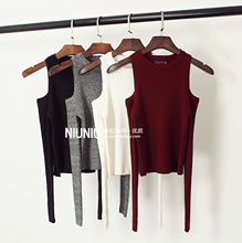 欧美复古紧身显胸窄肩针织吊带 超短款露脐装 高腰高弹力小背心潮