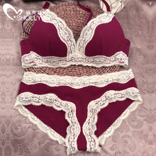 曼秀莉 深V性感内衣蕾丝少女文胸 无钢圈内衣软杯文胸套装新品