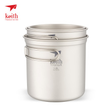 Keith铠斯钛锅 纯钛三件套锅2-4人用 户外野营登山居家炊具锅具