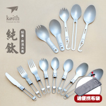 铠斯keith钛勺两用叉勺饭勺户外餐具便携 纯钛野餐饭叉野营勺子
