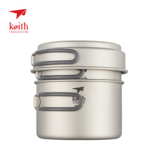keith铠斯1.2L户外野营野餐套锅400ml钛碗 多用便携纯钛锅碗套装