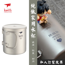Keith铠斯单层钛水杯纯钛杯子咖啡杯可烧水户外折叠钛茶杯钛带盖