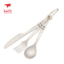包邮铠斯keith纯钛刀叉勺三件套钛餐具 钛合金户外野营便携餐具