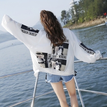 17夏季新款薄款短外套女韩版宽松BF风时尚印花飞行员夹克防晒衣潮