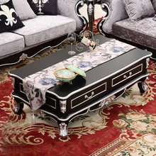风飞扬 新古典欧式茶几茶桌黑描银雕花法式沙发带抽屉茶几010