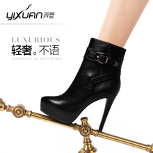 羿萱2016秋冬新款女靴欧美真皮细跟超高跟靴防水台女短靴及踝靴子