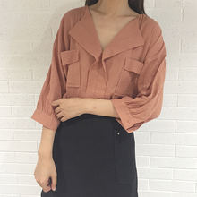 2017春装新款韩版宽松长袖翻领衬衫显瘦套头衬衣学院风上衣女学生