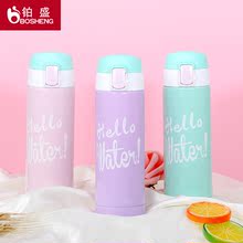铂盛男女士创意水杯不锈钢双层真空保温杯儿童弹跳盖500ml随身杯