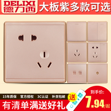 德力西开关插座套餐拉丝紫五孔插座墙壁开关面板 香槟金开关插座