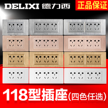 德力西118型墙壁开关插座四位二十孔插座电源面板 十二孔五孔插座