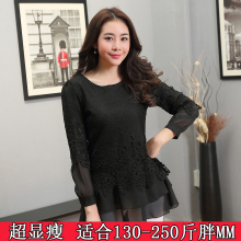 2017春款蕾丝花边修身打底衫200斤胖mm加肥大码女装显瘦中长款T恤