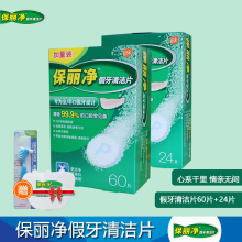 保丽净假牙清洁片/清洗片60+24片赠假牙刷牙盒全口半口假牙清洗剂