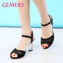戈美其夏季新款女鞋银色白色一字扣带女款粗跟凉鞋女时尚高跟凉鞋