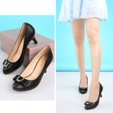 戈美其春秋新款女鞋圆头单鞋女百搭高跟工作鞋细跟黑色裸色春秋鞋