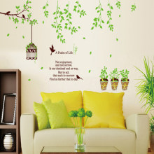 鸟笼花藤 风景客厅卧室墙背景墙贴画花盆诗句卡通9035